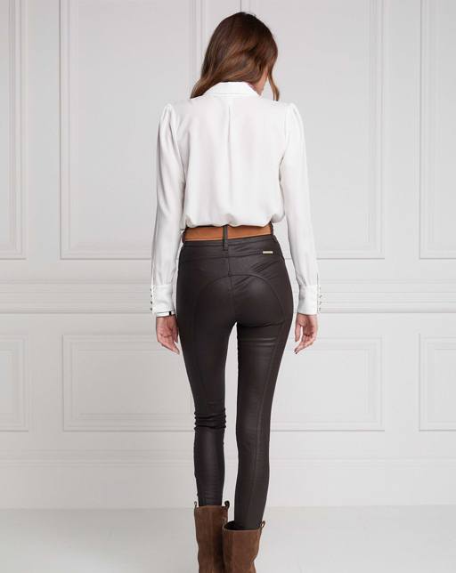 The insulated jacket is made of leather. A light layer of insulation. Details: stand-up collar, zipper, two pockets on the sides.